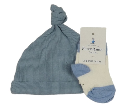 Nové - Modrošedá bavlněná čepice + bílo-modré ponožky Petter Rabbit M&S