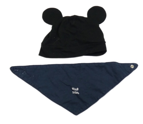 2set - Černá čepice s oušky + tmavomodrý slinták s nápisem