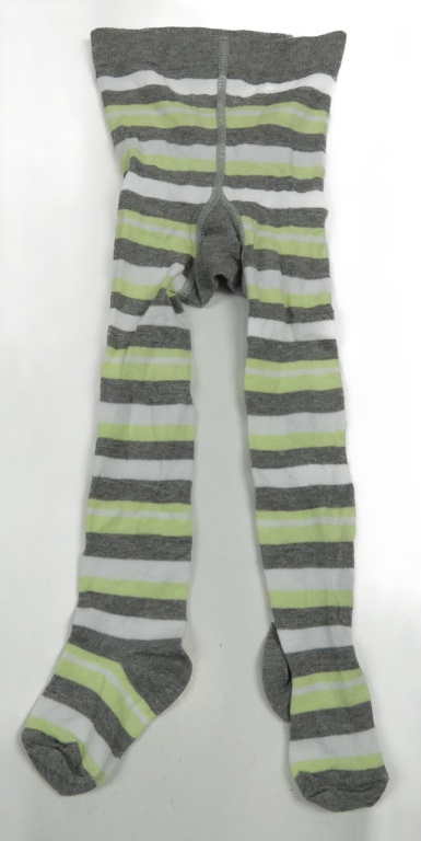 Šedo-bílo-limetkové pruhované punčocháče