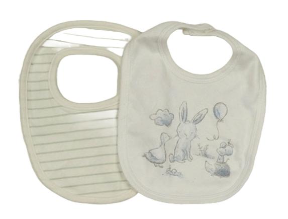 2x slinták - bilý se zvířaty + smetanovo-zelený pruhovaný