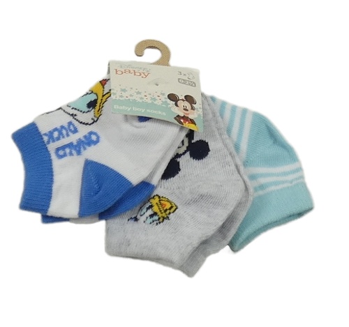 Nové - 3x ponožky - bílé s Donaldem + světlešedé melírované s Mickeym a Donaldem + pruhované s Mickeym Disney