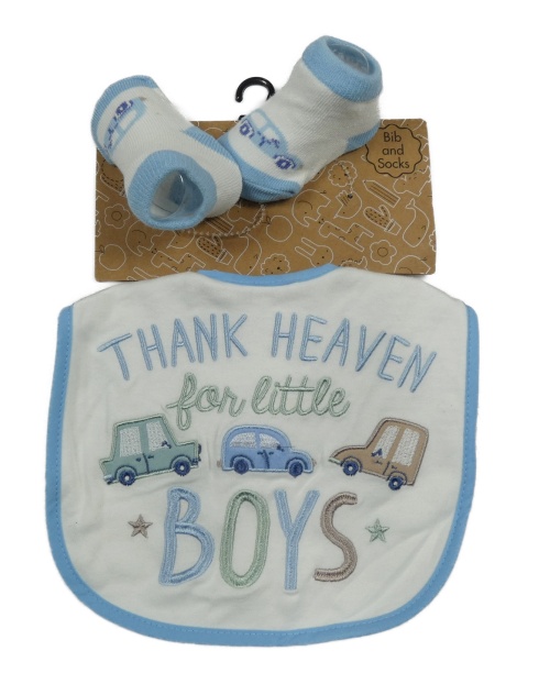 Nové - 2set - Bílo-modrý bryndák s auty + bílo-modré ponožky s auty