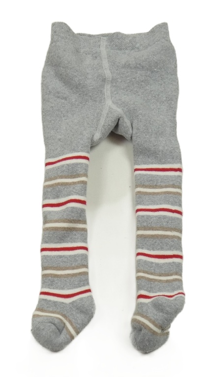 Šedo-bílo-červeno-hnědé pruhované melírované teplé punčocháče s nápisy