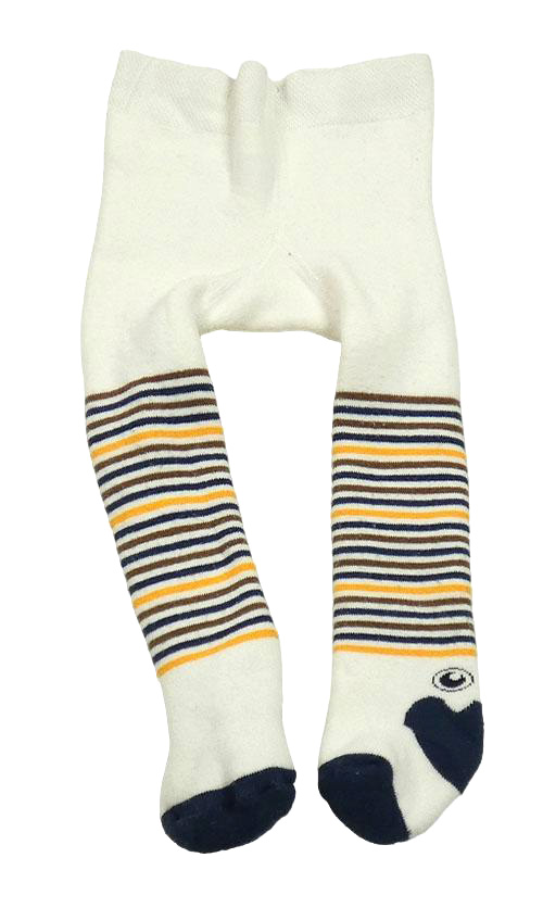Bílo-hnědo-tmavomodré thermo punčocháče s pruhy