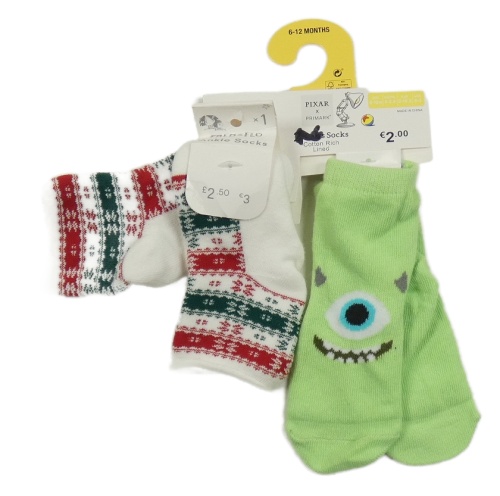 Nové - 2x ponožky - zelené s příšerkou + bílo-zeleno-červené vzorované