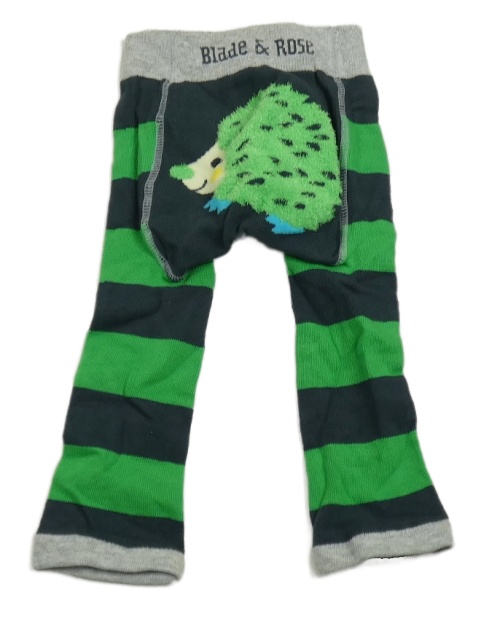 Nové - Tmavozeleno-zelené pruhované punčochové kamaše s ježkem