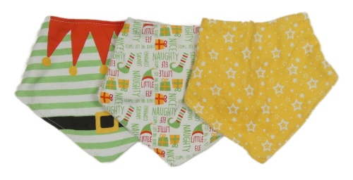3x slinták - hořčicový s hvězdami + zeleno-bílý pruhovaný - elf + bílý s dráky a nápisy