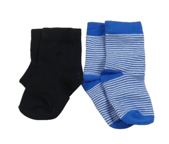 2x ponožky - černé + modro-bílé pruhované