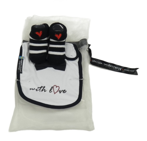 Nové - 2set - Bílo-černý bryndák s motýlkem + pruhované ponožky