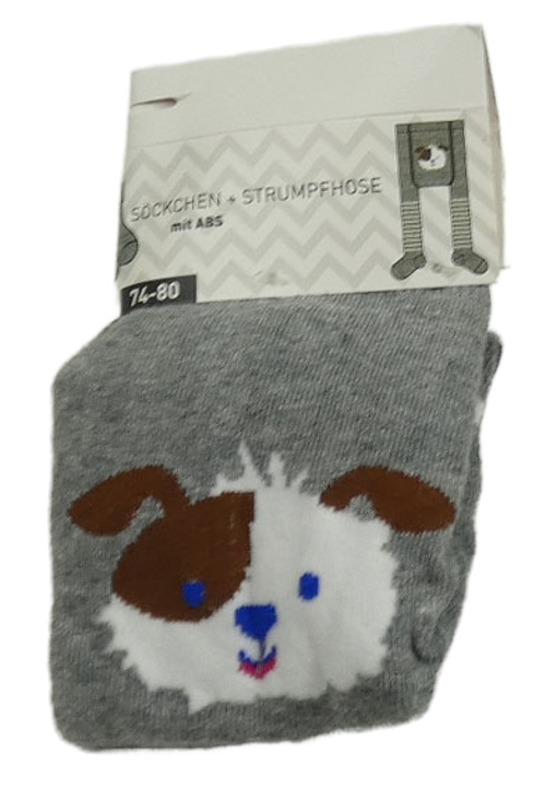 Nové - šedé punčocháče s pruhy a pejskem