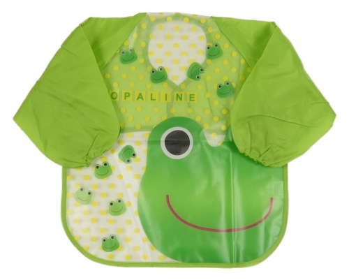 Zelený šusťákovo/gumový bryndák s žábou a rukávy