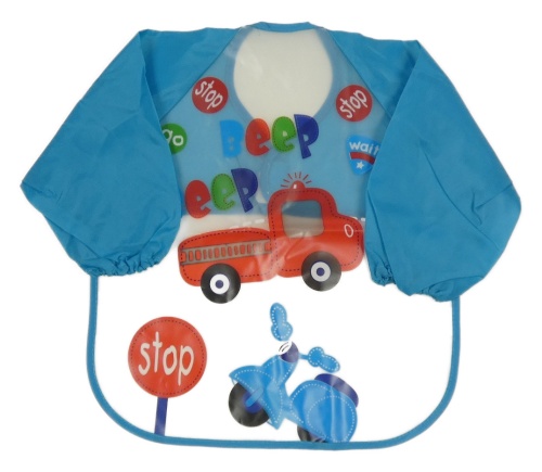 Modro-průhledný šusťákovo/gumový bryndák s hasiči a rukuávy