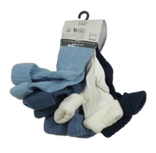 Nové - 5x žebrované ponožky - 2x modré + 2x tmavomodré + smetanové George