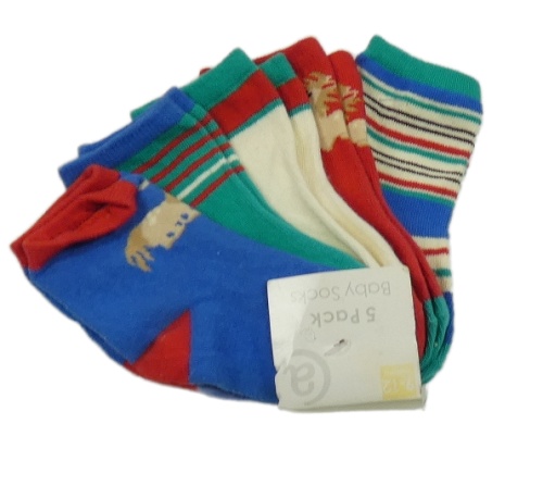 Nové - 5set - 5x Tmavomodro-smetanovo-červeno-zelené ponožky