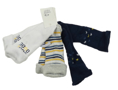 Nové - 3x thermo ponožky - bílé s nápisem + pruhované + tmavomodré s hvězdami F&F