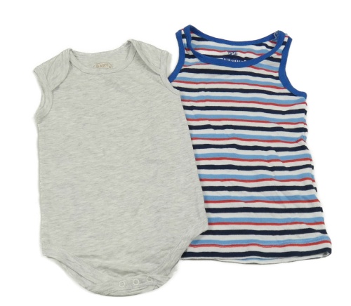 2 set - šedé body + modro-červený pruhovaný nátělník