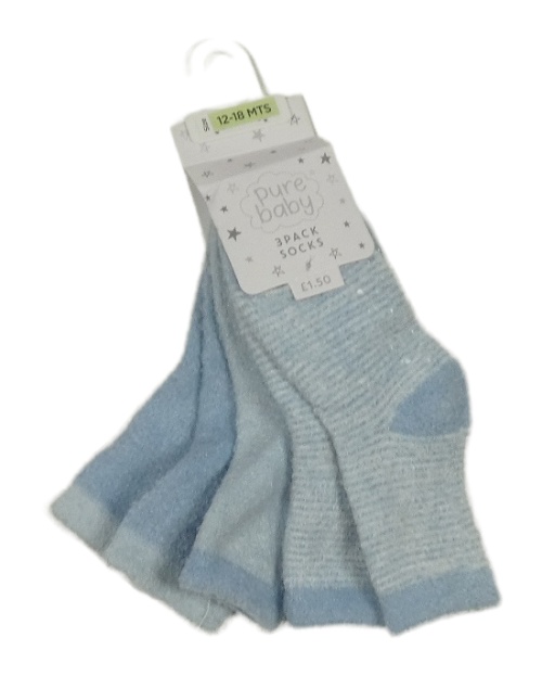 Nové - 3x chlupaté ponožky - 2x světlemodré + světlemodro-bílé pruhované