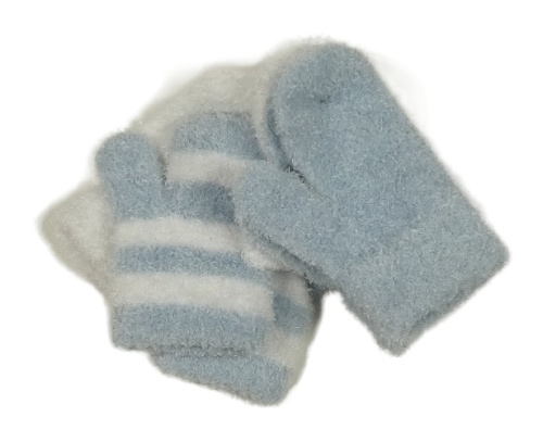 Nové - 3set - 3x Světlemodro-bílé pletené chlupaté palcové rukavice