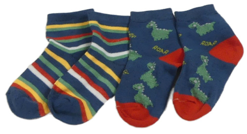 2x ponožky pruhované+ tmavomodré s dinosaury