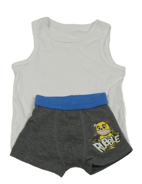 2Set - Bílý žebrovaný nátělník PRIMARK + šedo/modré melírované boxerky s PAW PATROL - Rubble nickelodeon