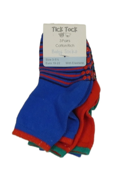 Nové - 3x - Modré + zelené + červené ponožky s proužky Tick Tock vel. 19-22