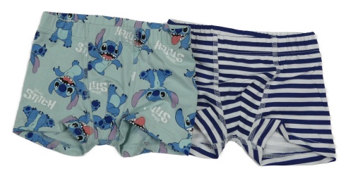2x boxerky - bílo-tmavomodré pruhované + zelené se Stitchem H&M