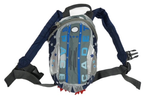 Šedo-tmavomodrý batůžek s nápisem a hvězdičkami