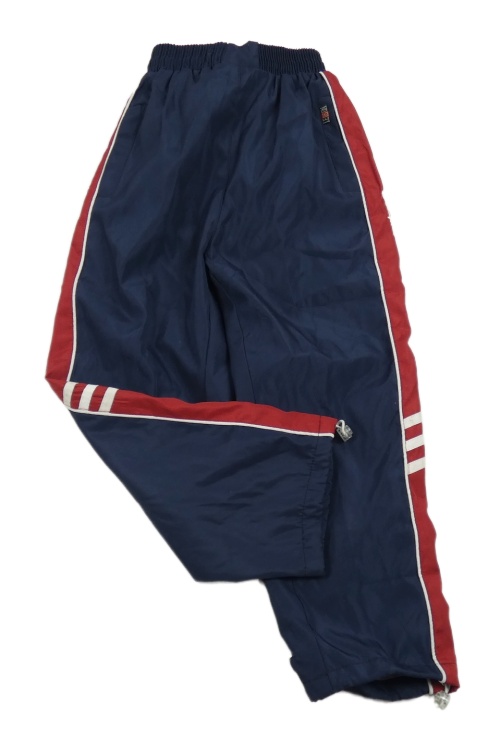 Tmavomodro-červené šusťákové podšité kalhoty s pruhy