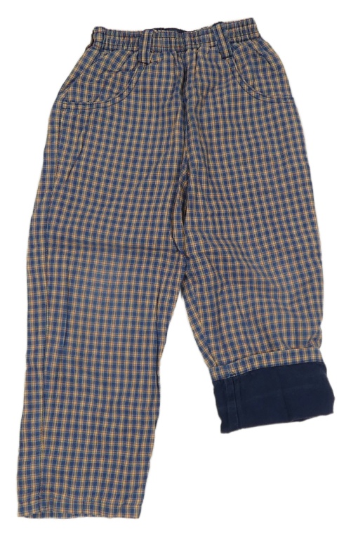Modro-žluto-oranžové kostkované podšité kalhoty