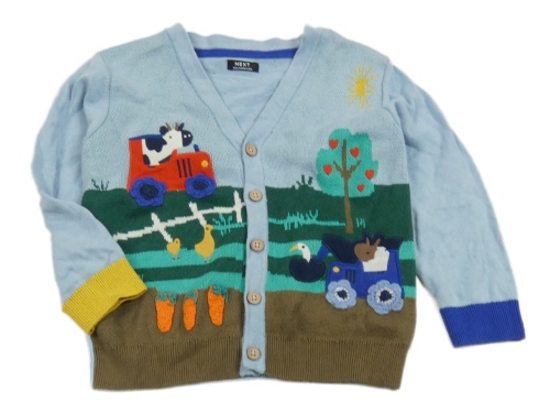 Světlemodro-hnědo-safírovo-okrový propínací svetr s farmou Next