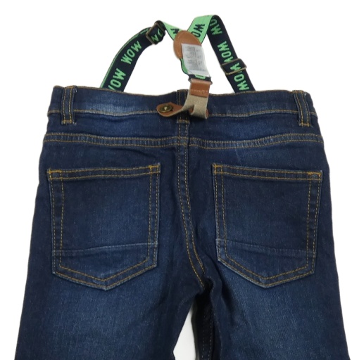 Tmavomodré slim fit rifle s kšandami Lupilu