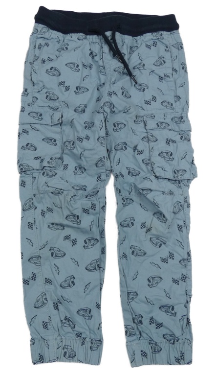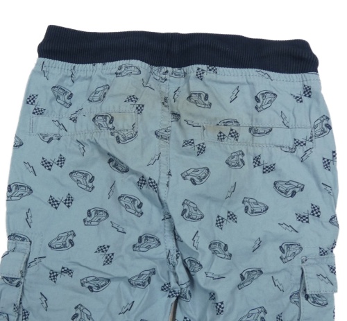 Světlemodré plátěné cargo cuff kalhoty s auty a úpletovým pasem Lupilu