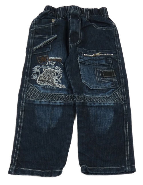Tmavomodré rifle s výšivkou a kapsou