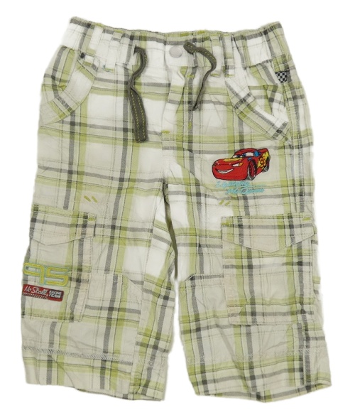 Bílo-zeleno-šedé kostkované plátěné 3/4 kalhoty - Auta