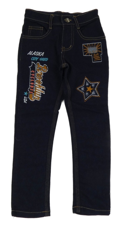 Tmavomodré skinny rifle s nápisy a hvězdou
