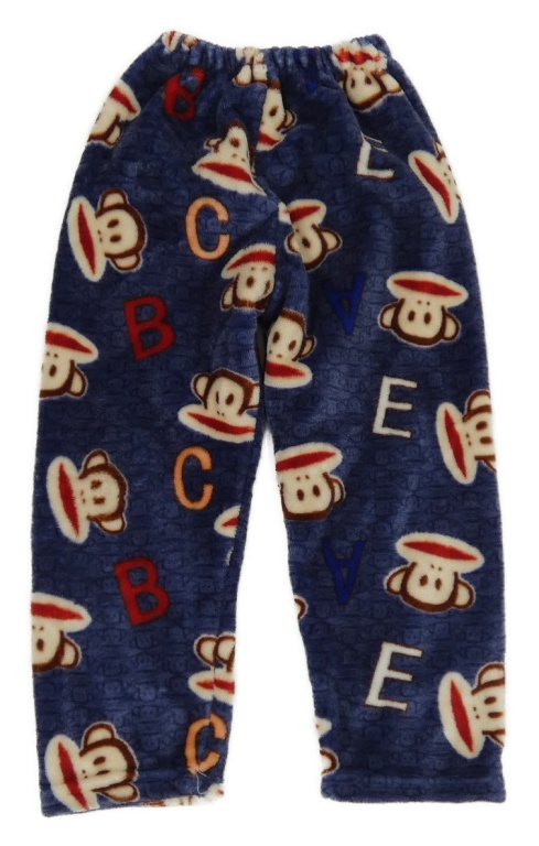 Tmavomodré chlupaté domácí kalhoty s opičkami