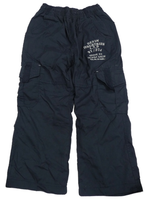 Tmavomodré šusťákové podšité kalhoty s nápisem