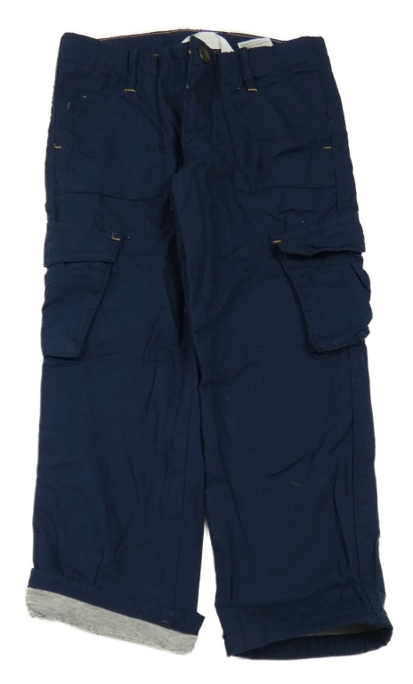 Tmavomodré cargo plátěné podšité kalhoty H&M