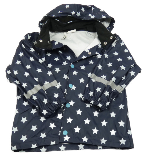 Tmavomodrá nepromokavá bunda s hvězdičkami a kapucí