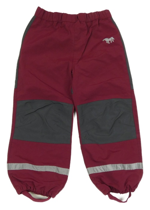 Vínovo-tmavošedé šusťákové podšité kalhoty s jednorožcem Topolino