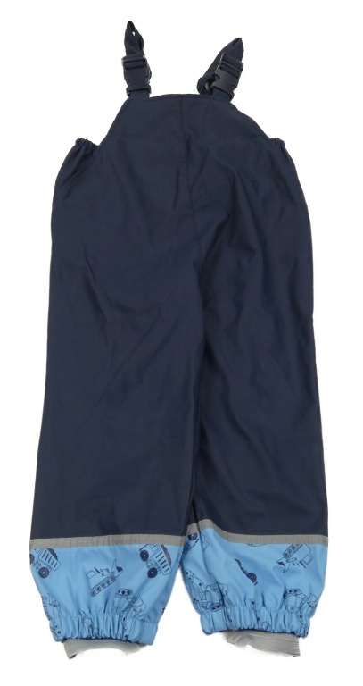 • Tmavomodro-modré nepromokavé laclové podšité kalhoty se stavebními stroji X-MAIL