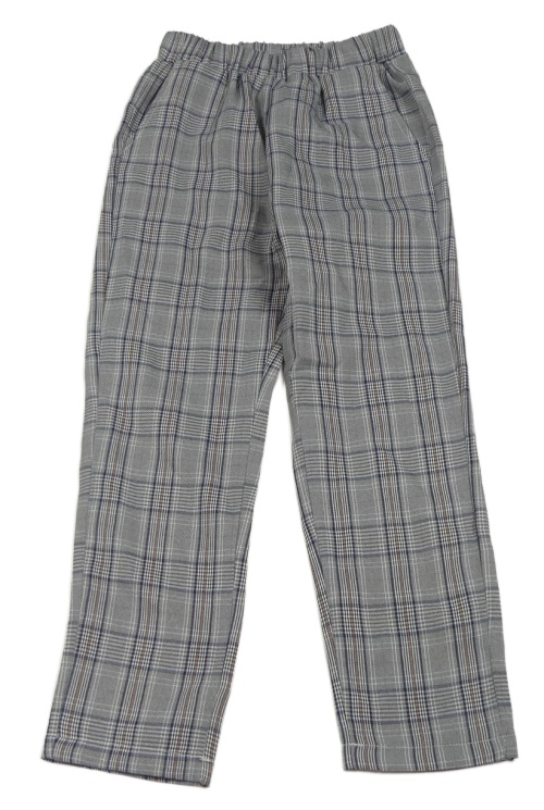 Šedo-bílo-černo-tmavomodro-červené kostkované vzorované kalhoty