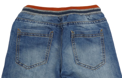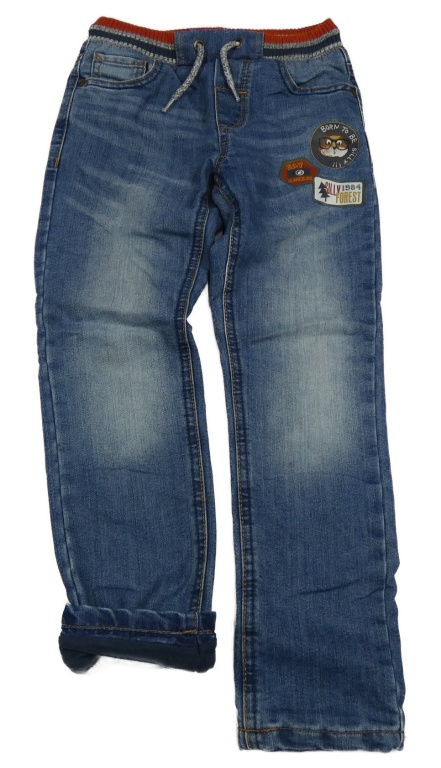 Modré podšité rifle s úpletovým pasem a potiskem C&A