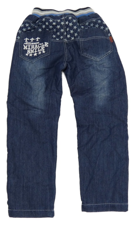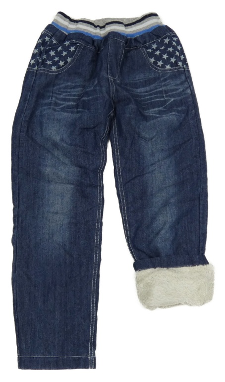 Tmavomodré zateplené rifle s hvězdami a úpletovým pasem