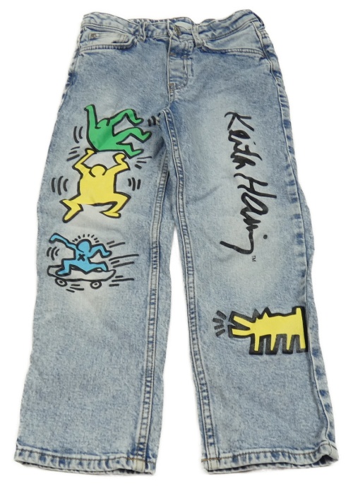 Modré plísňové loose waist rifle s obrázky - Keith Haring H&M
