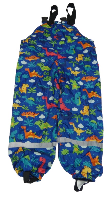 Modré šusťákové podšité laclové kalhoty s dinosaury