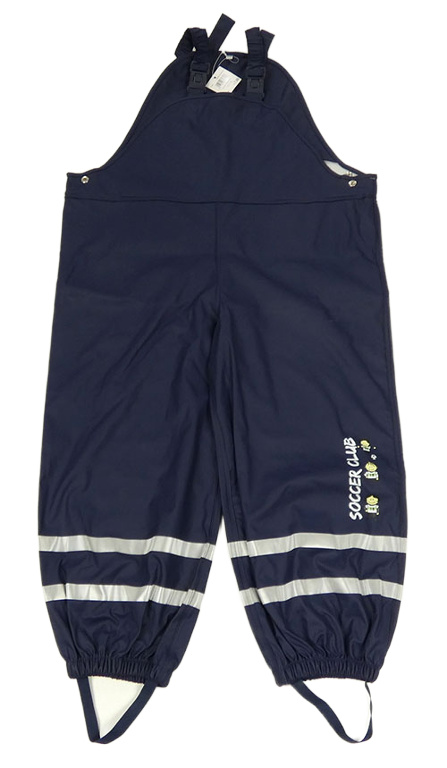 Nové - tmavomodré nepromokavé laclové kalhoty s fotbalisty