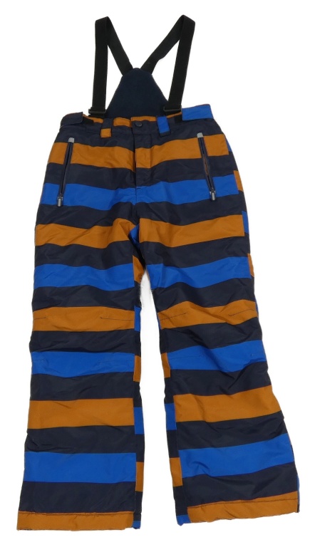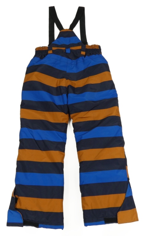 Modro-hnědé pruhované šusťákové funkční oteplovačky s kšandami Topolino