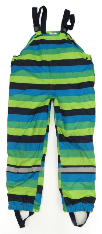 Modro-zeleno-tmavomodré pruhované šusťákové laclové podšité kalhoty Topolino
