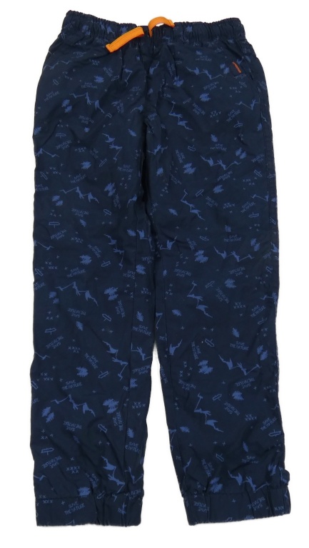 Tmavomodré plátěné podšité cuff kalhoty s obrázky Kids